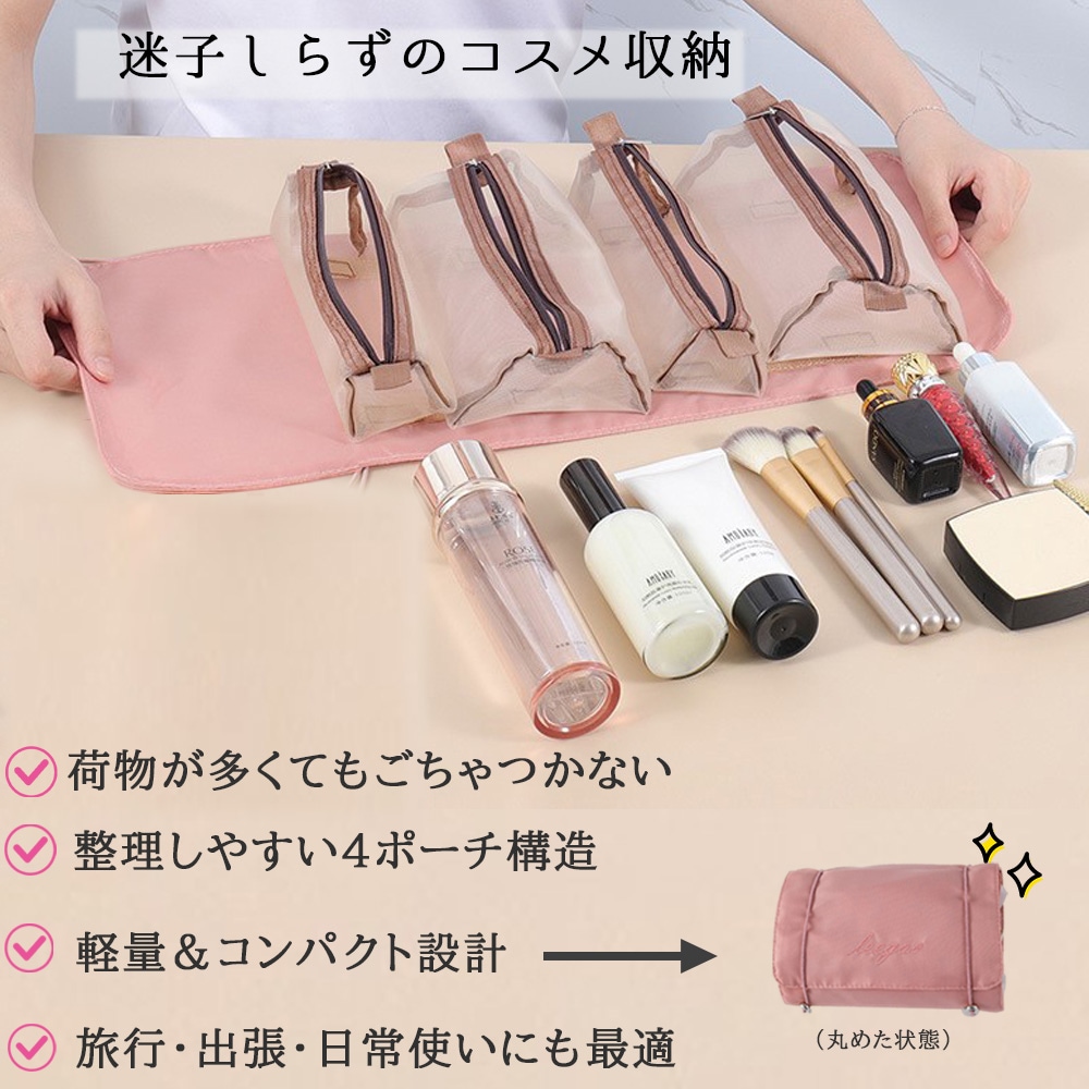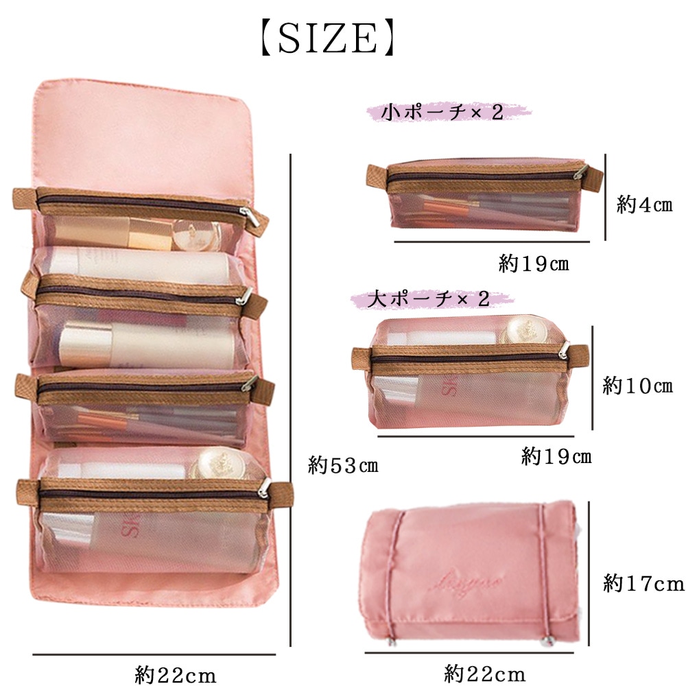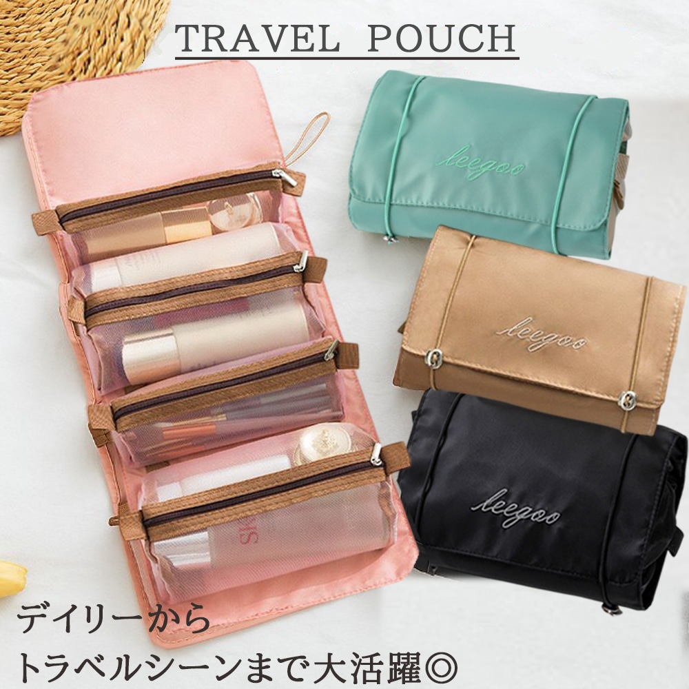 吊るせる トラベルポーチ 着脱ポーチ付き 4in1 コスメポーチ 化粧ポーチ メイクポーチ 洗面ポーチ 旅行ポーチ レディース 便利グッズ おしゃれ 旅行グッズ 温泉 出張